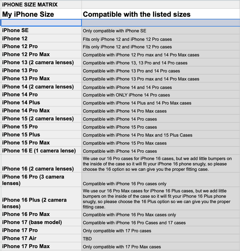 Consider your iPhone color when choosing a case for our 2 camera lense Iphone sizes.